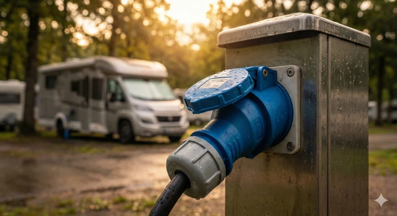 El enchufe de camping para autocaravana que solemos encontrar no es el mismo tipo de conexión que utilizamos en nuestro día a día. Vamos a ver de que tipo de conexión se trata y cómo podemos equiparnos para evitar problemas cuándo necesitemos conectarnos a la estación de servicios del camping al que acabamos de llegar. Además deberías tener en cuenta la longitud y sección de cable para evitar que este se recaliente.