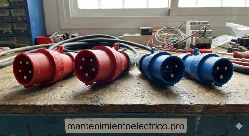 Que significa el color de un enchufe trifásico de uso industrial